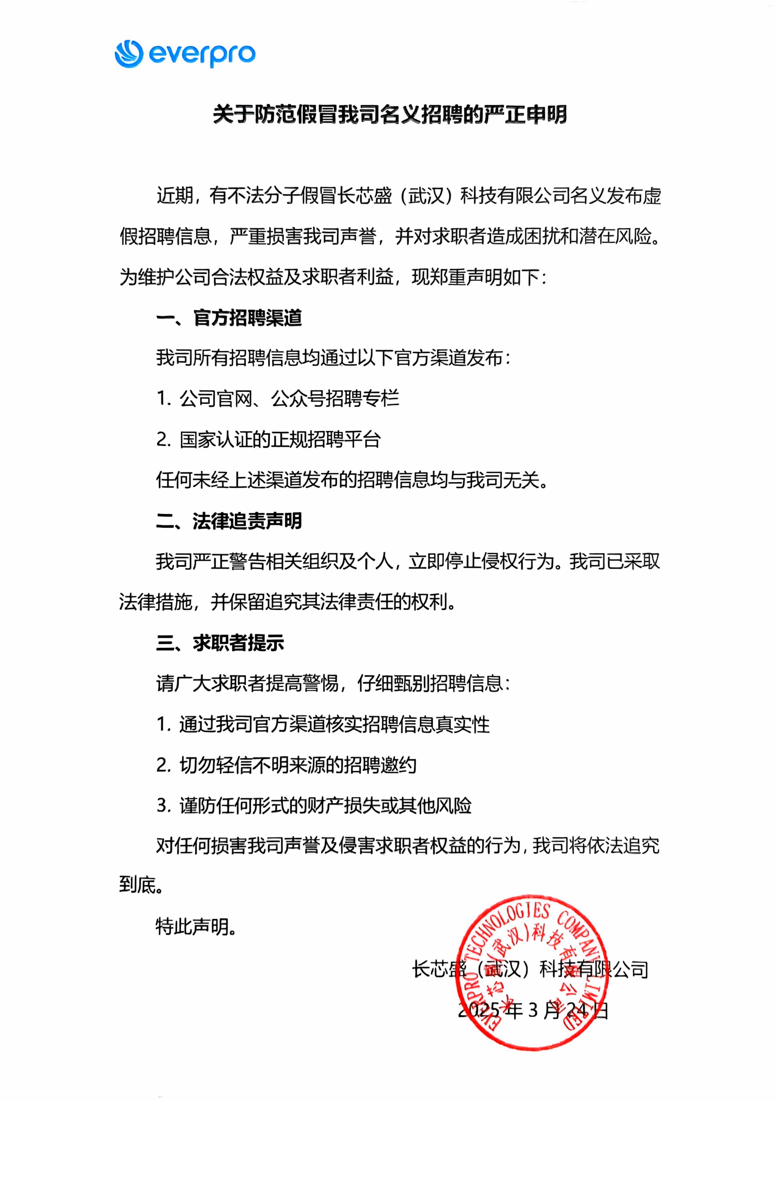 關于防范假冒我司名義招聘的嚴正申明